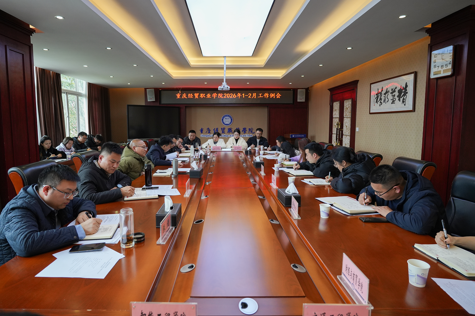 近日,学校校长张耀天在同德楼第一会议室组织召开了2026年1—2月工作例会,总结2026年1—2月重点工作完成情况,查找不足和问题,安排部署2026年3月重点工作。全体在校校领导及处科级管理干部参加会议。