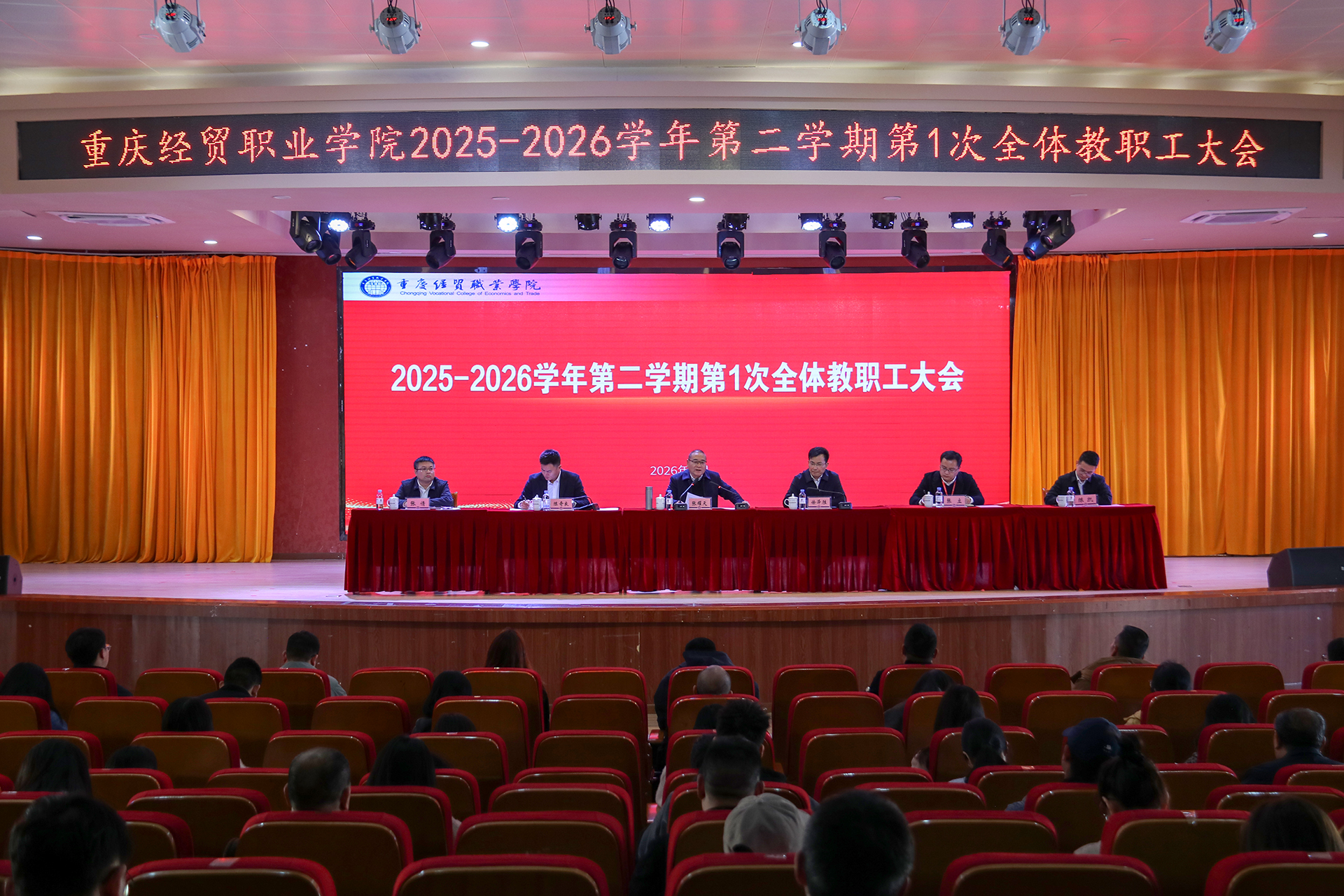 3月11日,我校2025-2026学年第二学期第1次全体教职工大会在博学厅顺利召开。学校校长张耀天,党委书记徐泽胜,副校长张立,校长助理张倩、陈凯及全体教职工参加大会。会议由副校长陈奇良主持。