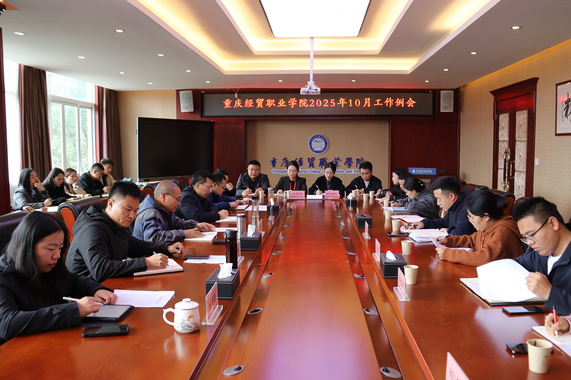 11月3日下午,学校校长张耀天在同德楼第一会议室组织召开了2025年10月工作例会,总结2025年10月重点工作完成情况,查找不足和问题,安排部署2025年11月重点工作。
