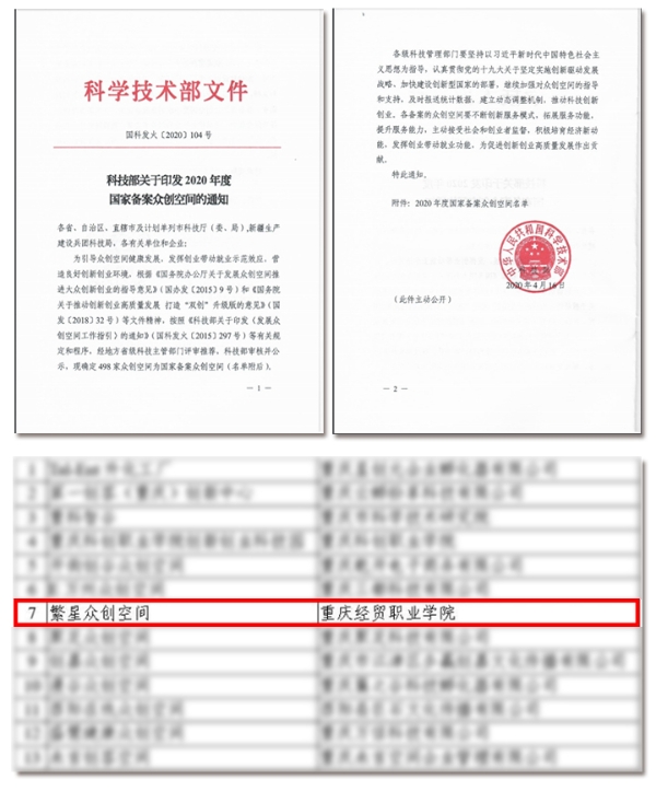喜报:重庆经贸职业学院繁星众创空间成功晋级“国家队”