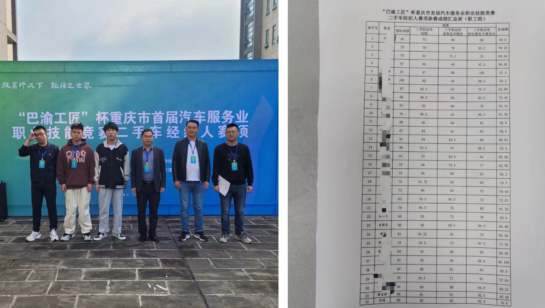 交通工程学院金朝昆老师获巴渝工匠杯“二手机动车经纪人”二等奖,蒲治祥老师获优胜奖。